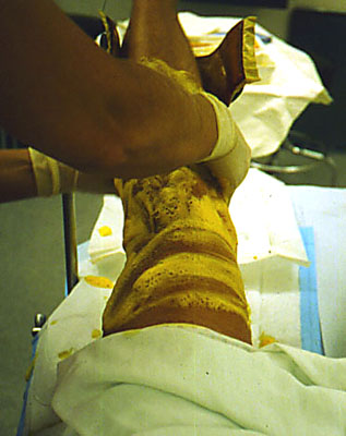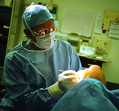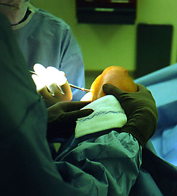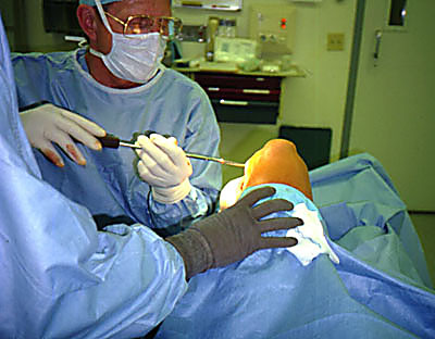 Then he sticks a BIG needle in and injects what feels like burning hot acid into the knee!! It took a half dozen painful injections to get things sufficiently numb.