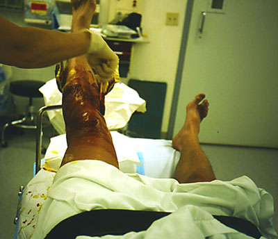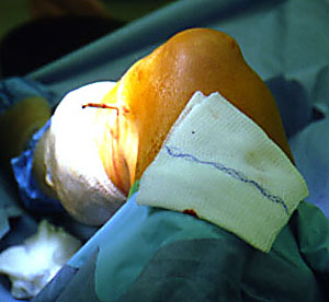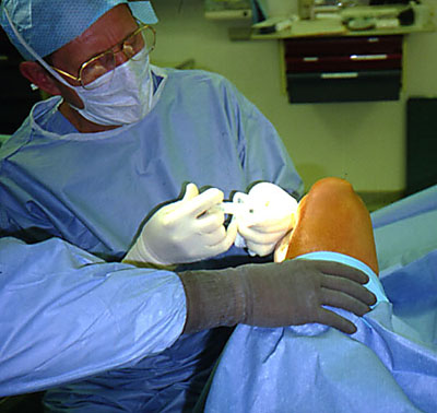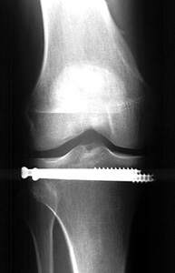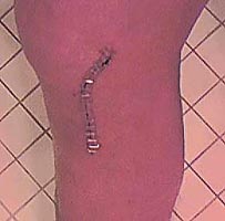 On 2/8/99, Dr. Johnson (who rebuilt my shoulder 13 years earlier) operated to repair the damage. He essentially drilled two 3" (80mm) lag bolts through my knee and attacked me with a staple gun.